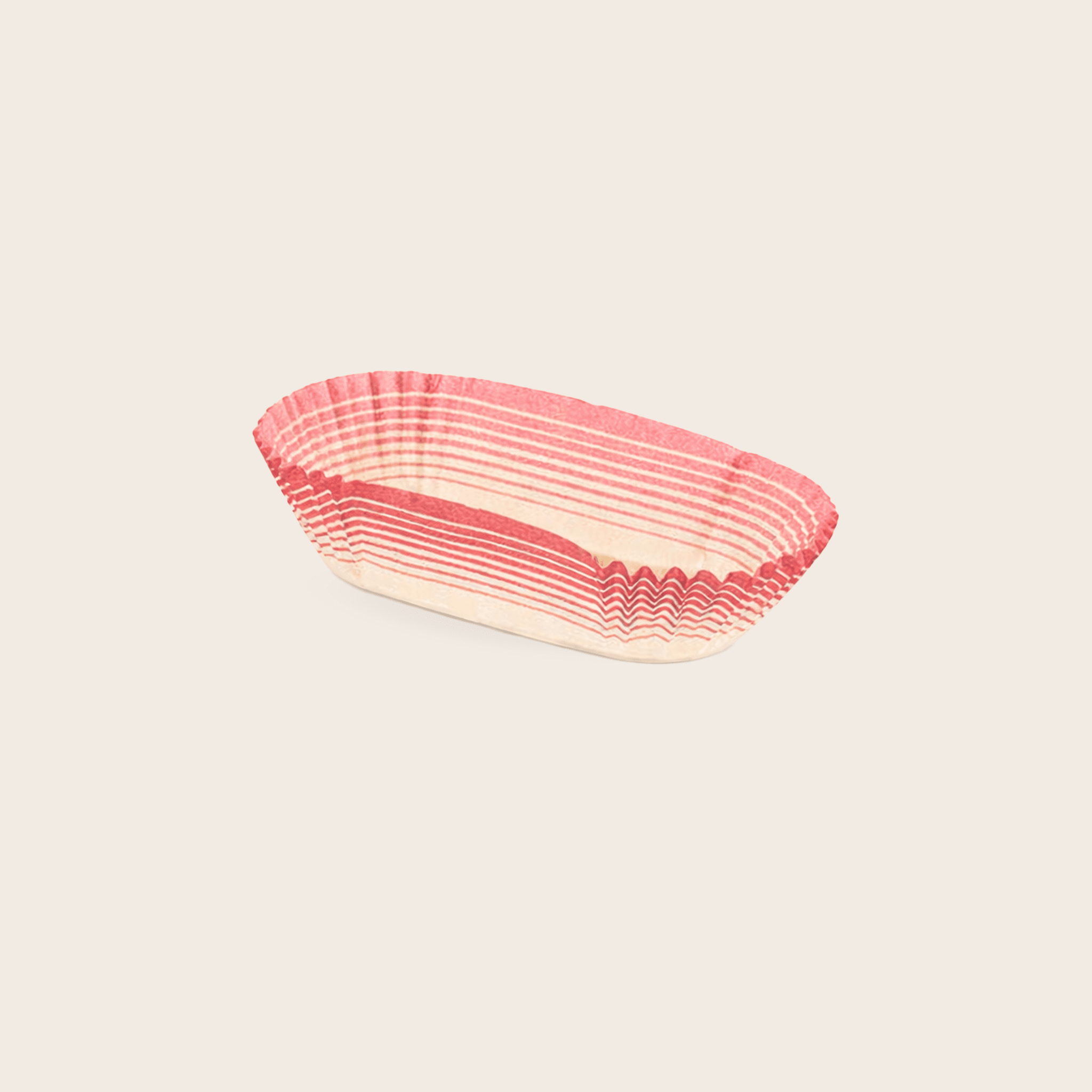Хартиена капсула, изработена от чисто бяла целулозна хартия, с външен печат на червени райета, подходяща за представяне на сладкарски изделия. Този артикул е рециклируем и биоразградим