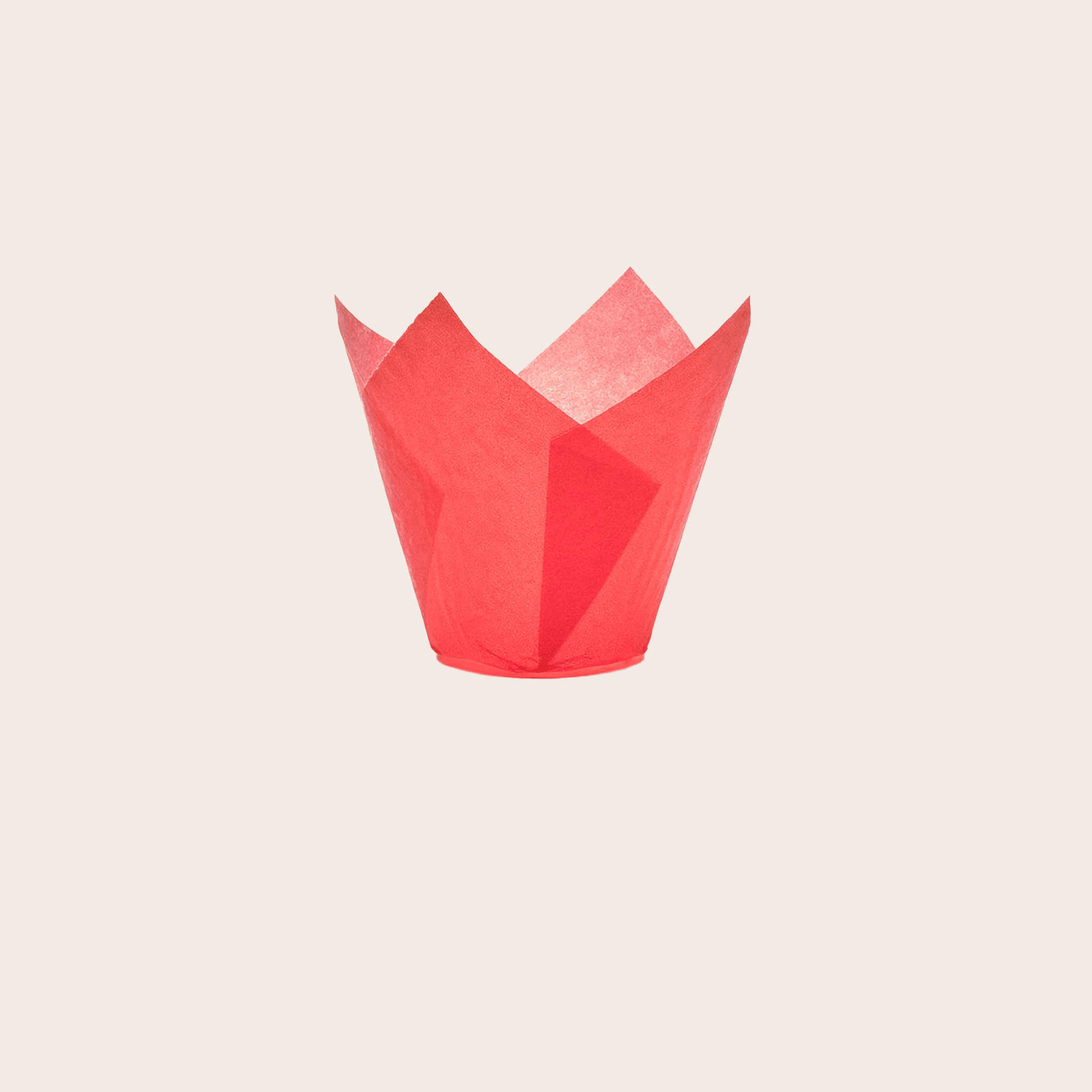 Paper baking shape designed for the production of muffins, but also suitable for other types of doughs. The pure cellulose paper is resistant to food fats and can withstand freezing and baking up to 220°C. This baking shape is recyclable and must be placed in a tray. The elegant design, in red paper with standard tips, makes it suitable for the presentation of the finished product